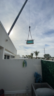 Due to the size and weight of the panels, the building’s elevator could not accommodate them. To ensure the panels were transported without damage, we coordinated a crane lift, carefully hoisting each panel up and over two balcony levels before staging and installing them on the third floor.